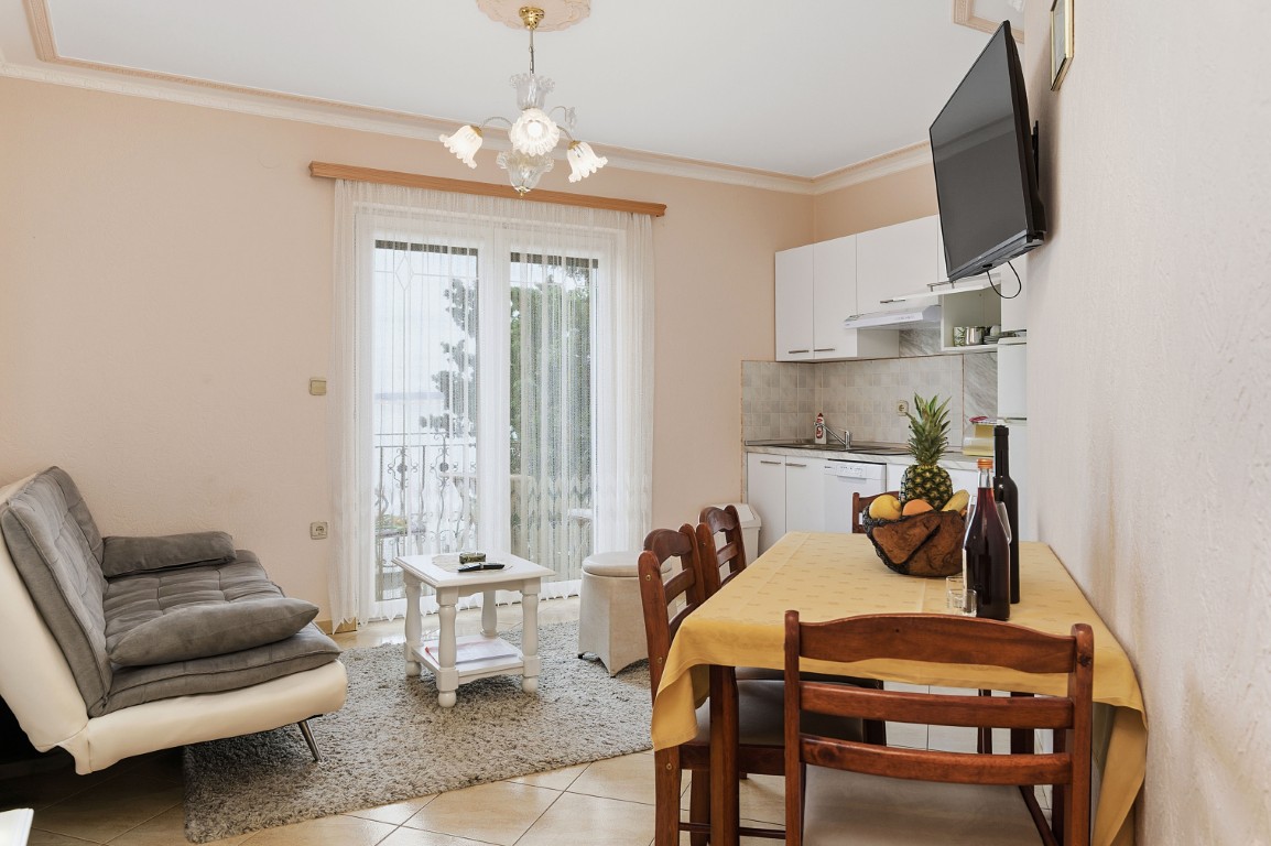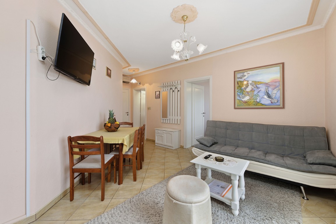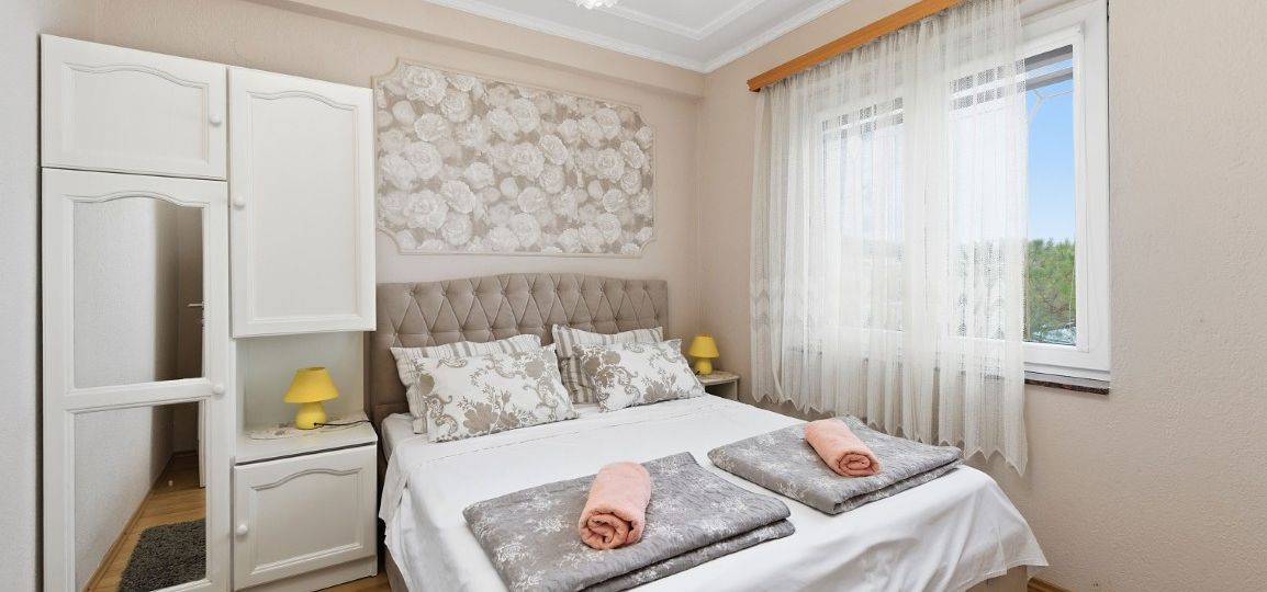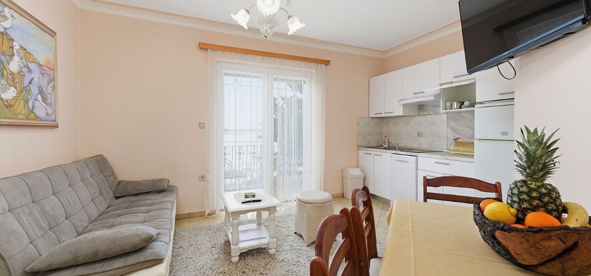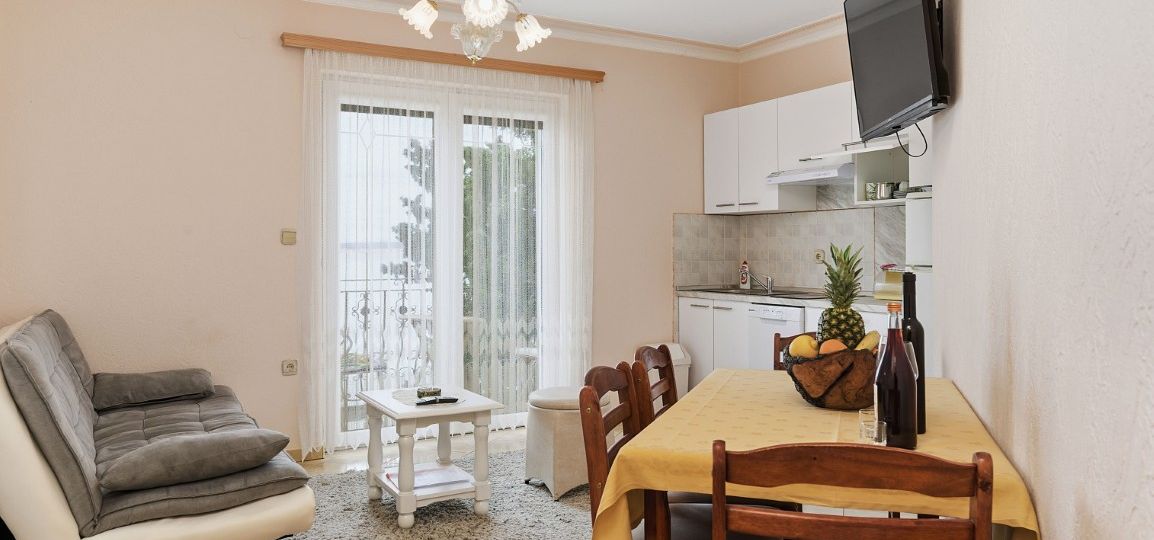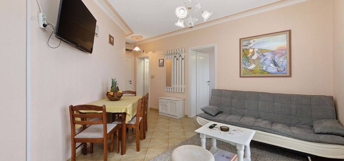 It consists of a living room with a TV, a bedroom, a bathroom with a toilet. It is air-conditioned and has a terrace with a view of the beach and the sea.