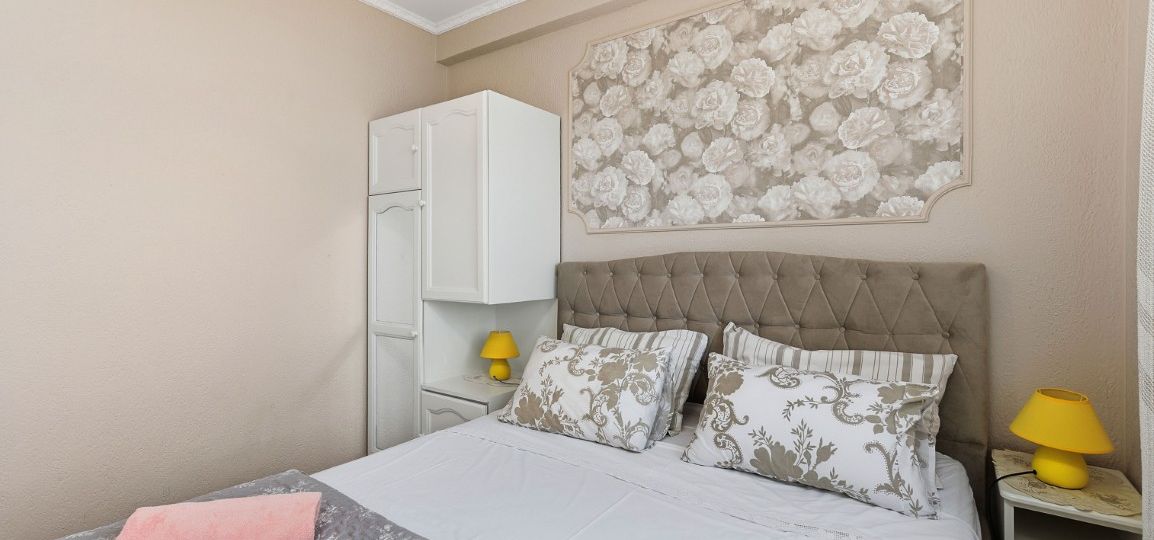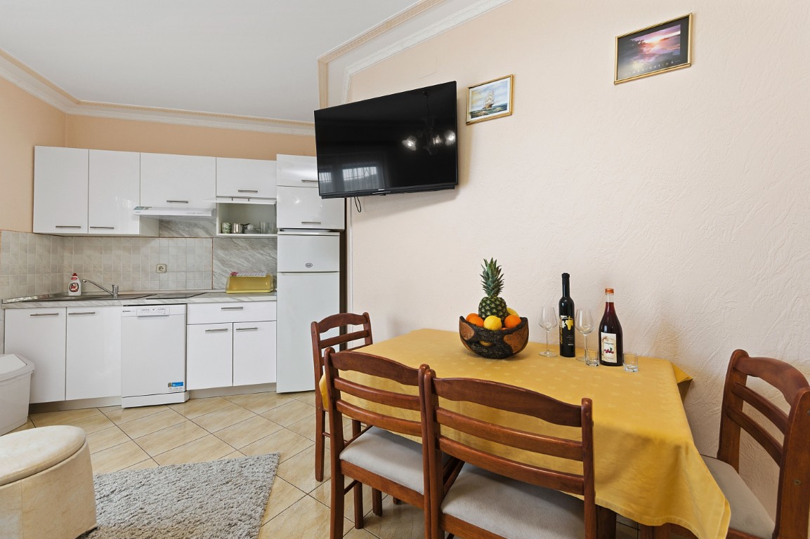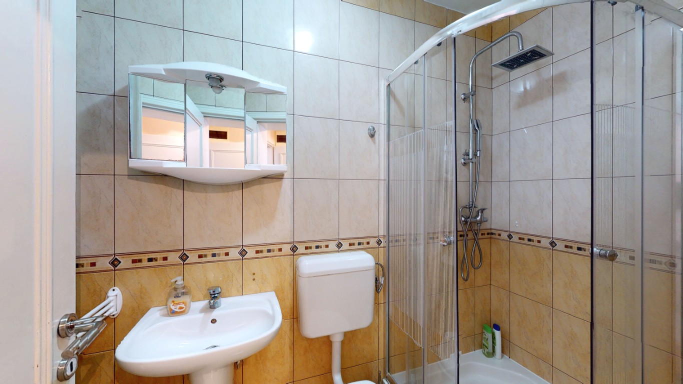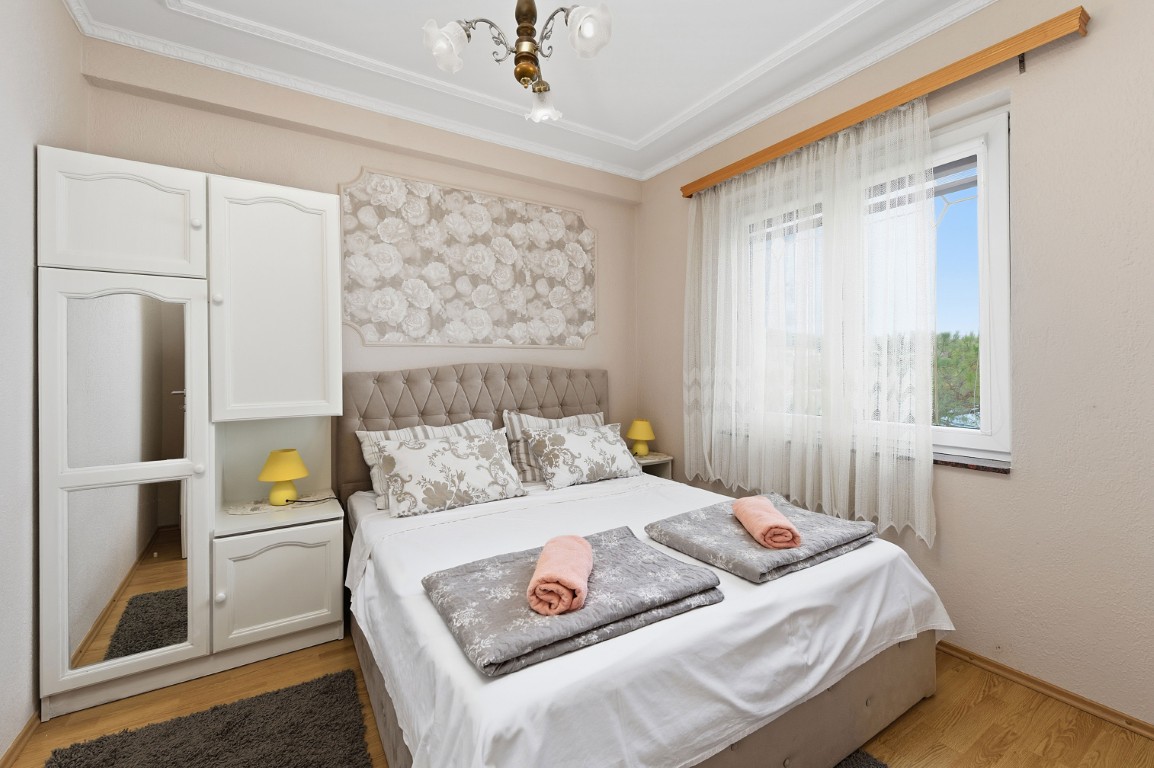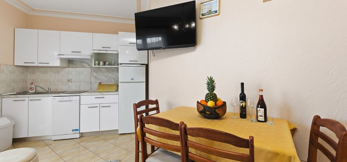 It consists of a living room with a TV, a bedroom, a bathroom with a toilet. It is air-conditioned and has a terrace with a view of the beach and the sea.
