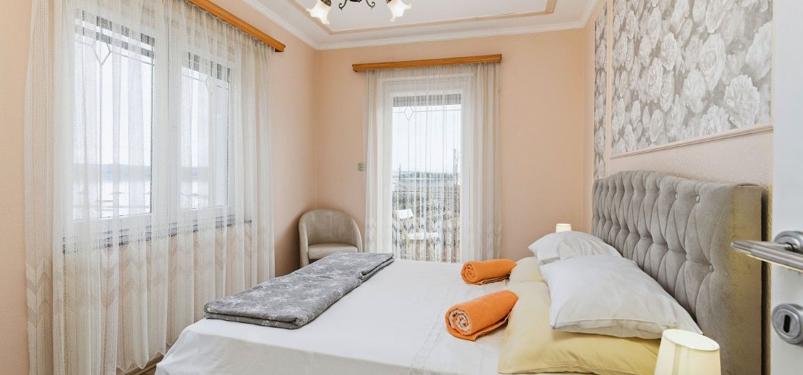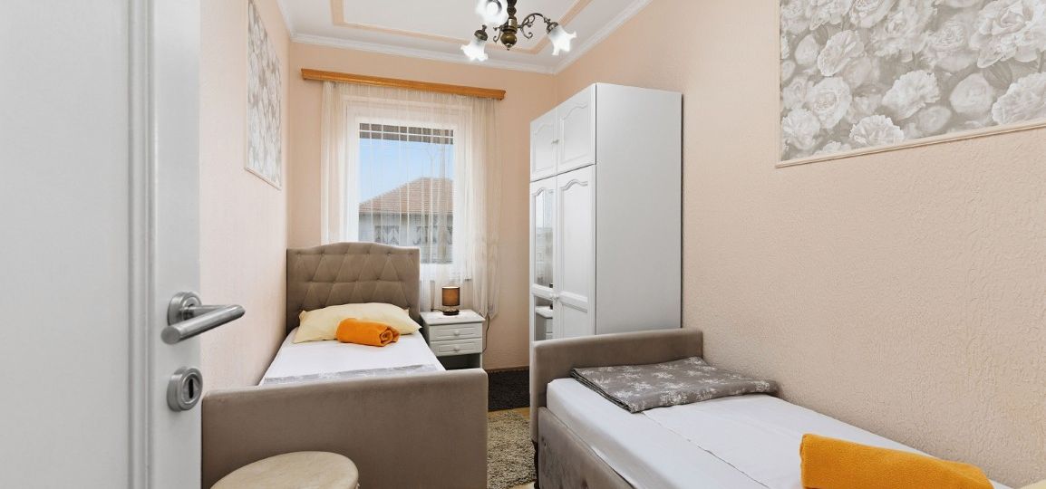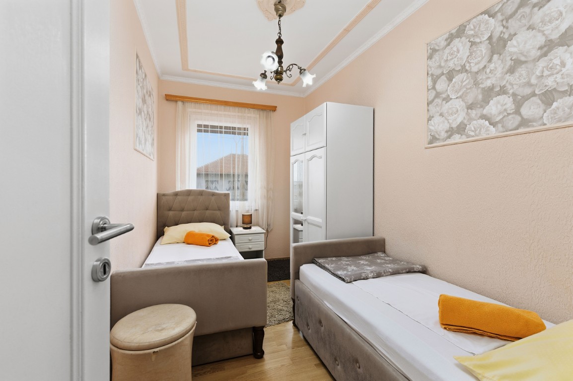 Soba 1 – 1 veliki bračni krevet, Soba 2 – 2 kreveta za 1 osobu